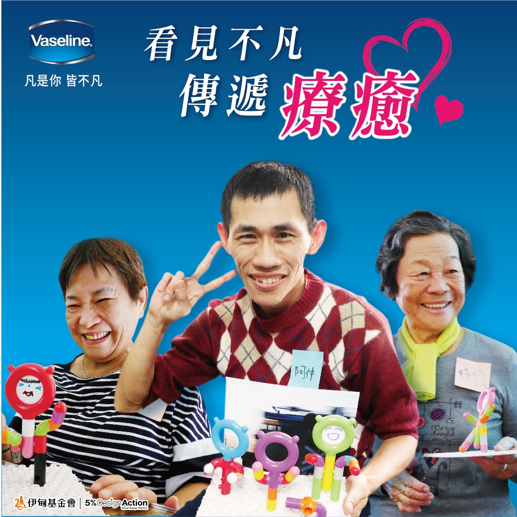 這次凡士林更首度與5%Design Action合作,在11月期間舉辦2場志工活動,深入伊甸服務單位,讓長輩與身障朋友們以積木設計屬於自己的作品,展現他們不凡的創作力。此外,凡士林更加碼發起「分享貼文1次,捐1元給伊甸」的活動,即日起至2020年2月29日止,邀請您與朋友們一起至凡士林FB粉專 分享活動貼文,用行動一起號召更多人關注與支持失能家庭服務計畫。