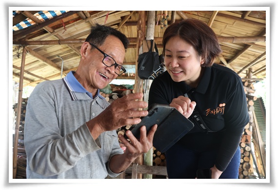 除了關懷陪伴,伊甸夥伴貼心協助黃阿公使用手機功能以保持對外聯繫