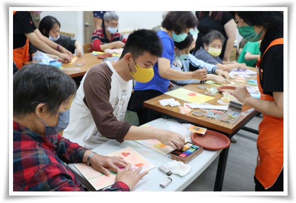 伊甸三峽國光日照中心與長輩們兩兩一組,一起發揮創意,完成獨特美麗,且充滿愛的卡片。