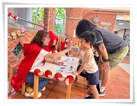 關卡以童話為主題,孩子需與童話角色互動通關,展現認知、感官與動作等能力發展。例如在「來我家玩吧!」關卡中,孩子協助豬小弟採買新家用品,透過圖片與實物比對,從神秘箱中找出正確物品;在「冰雪女王的秘密挑戰」中,則跟著雪寶爬行、跳躍完成任務。透過灰姑娘、小飛俠、大野狼等角色的帶領,讓孩子在遊戲中享受闖關的樂趣,減輕評估的緊張感。此外,為提升爸媽對早療與兒童發展的了解與重視,現場亦有專業人員提供早療相關諮詢。