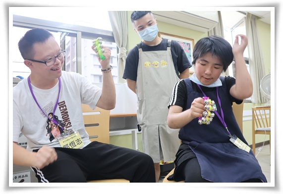 具身心障礙教學經驗的音樂治療師丁昱竹,針對新莊幸福小作所學員能力規劃、設計音樂課程。